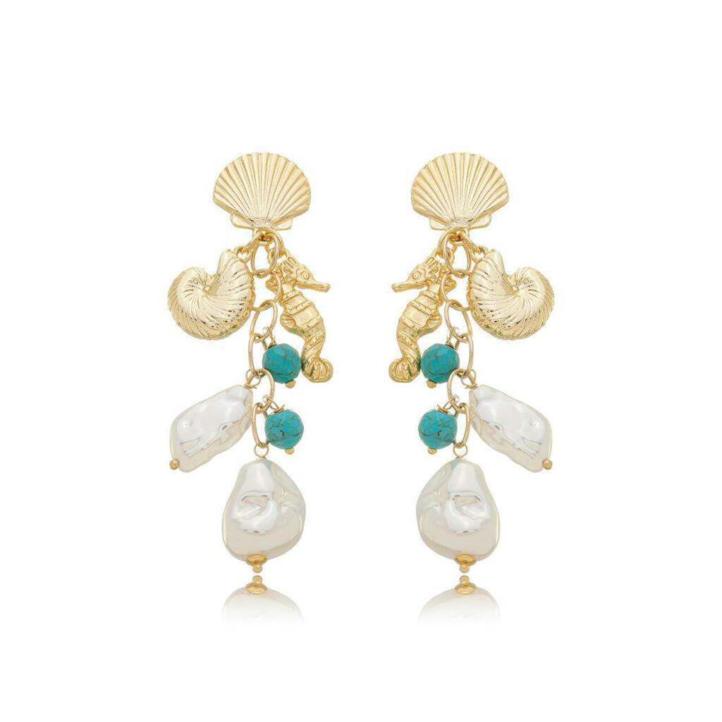 Descubre el Pendiente Maiorca, una pieza deslumbrante que combina la elegancia y la frescura de la naturaleza. Realizado en baño de oro de 18K y colgantes de perlas naturales y turquesas, aporta perfecta armonía y ligereza a cualquier look.